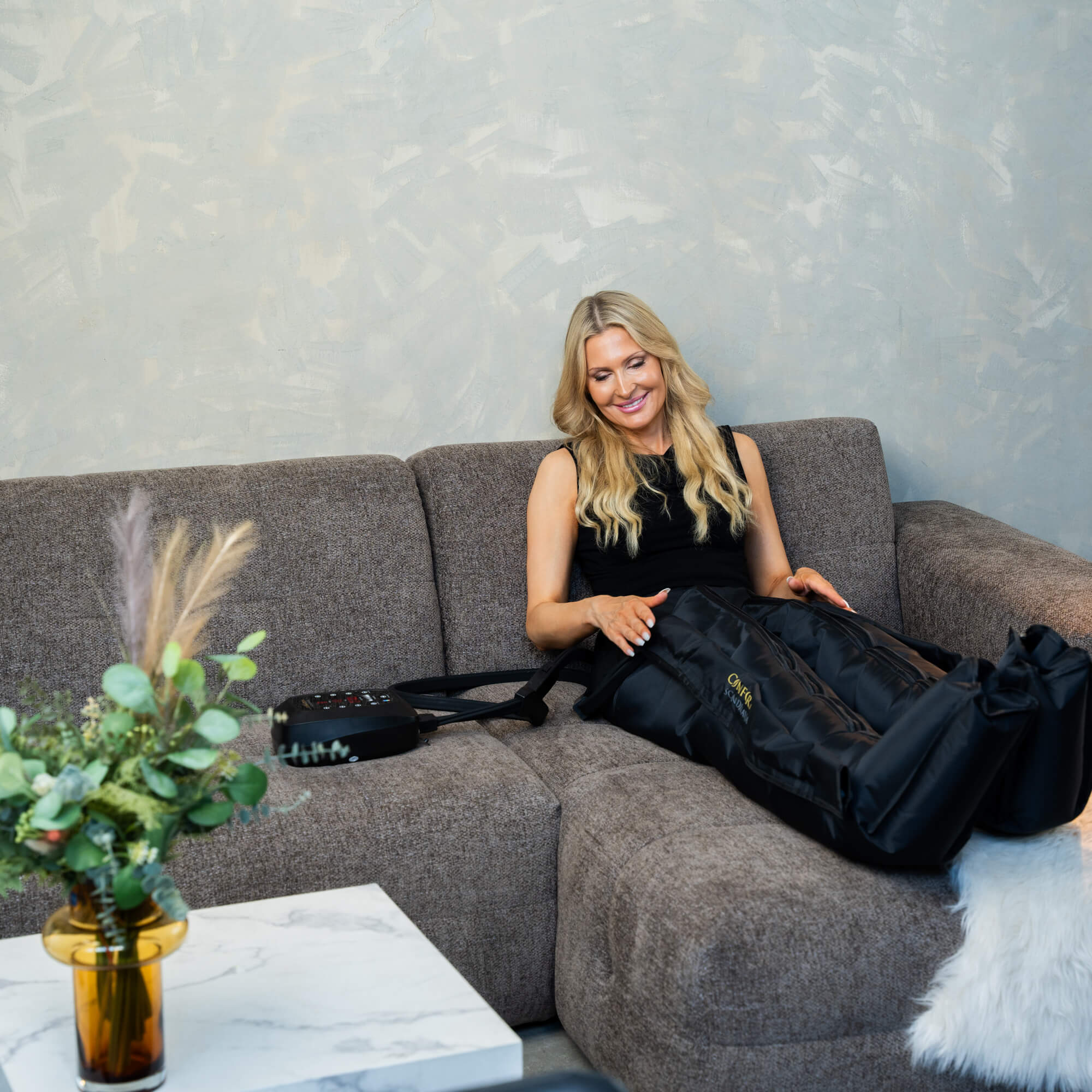Du känner säkert igen känslan av tunga och trötta ben. Den känslan kan också orsakas av en ansamling av slaggprodukter som benen kan behöva lite hjälp med att bli av med. Våra Recovery-stövlar hjälper till att dränera dessa slaggprodukter från dina ben.