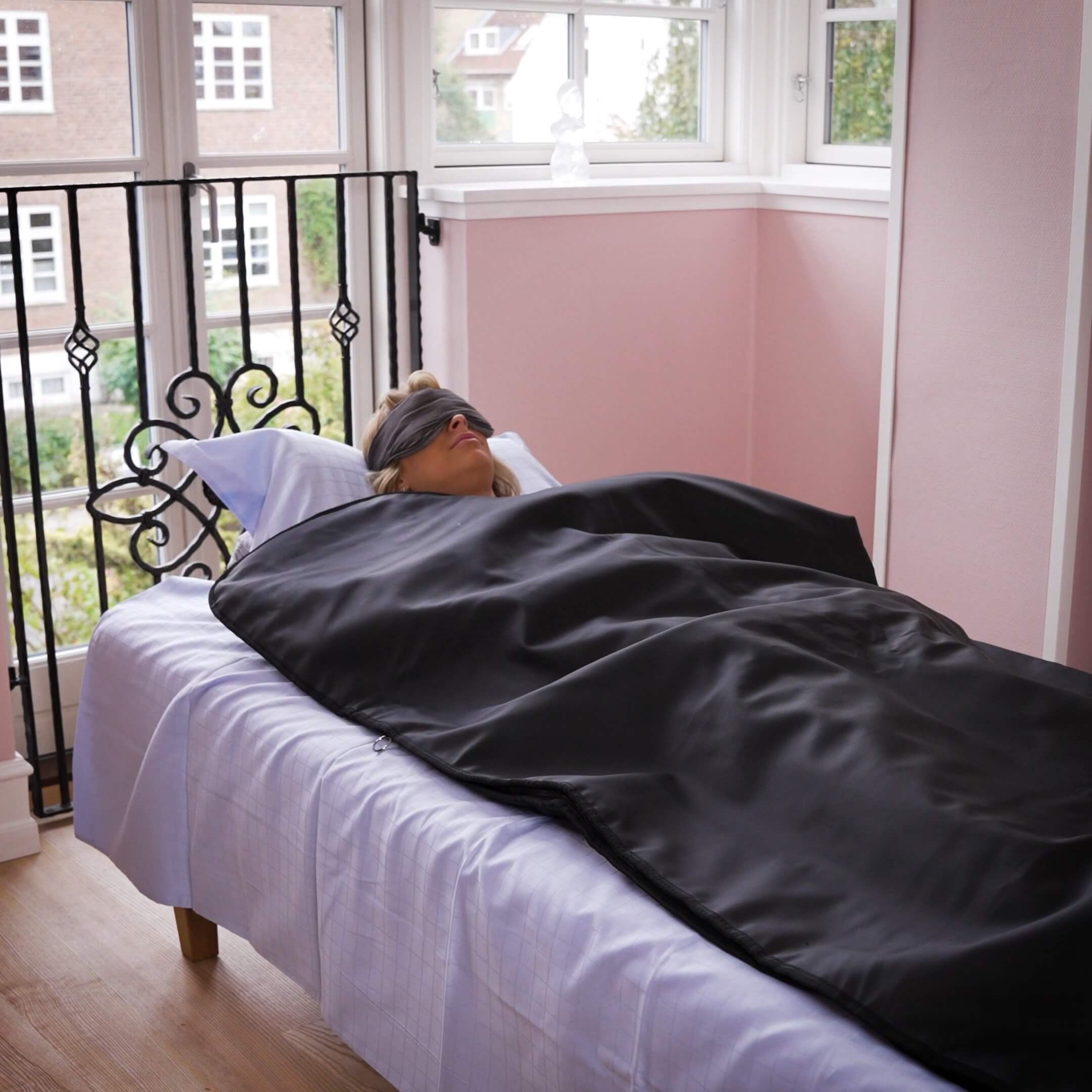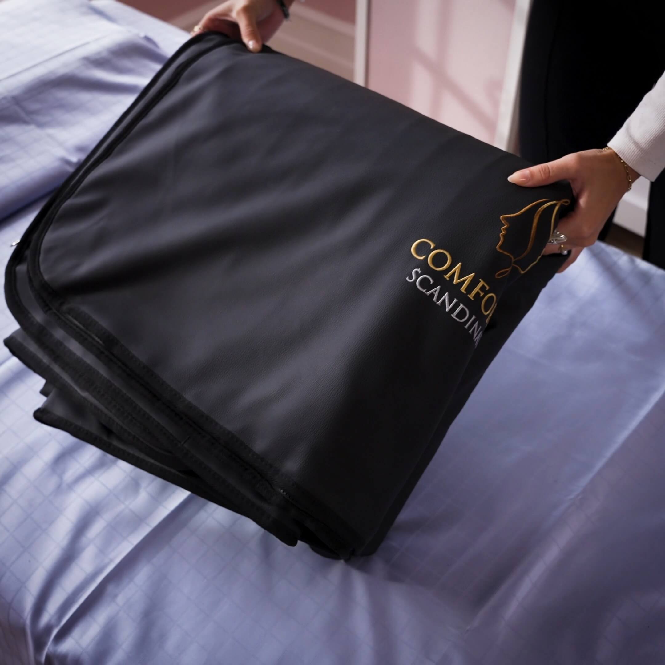 För en bekvämare behandling kan du använda Comforth Carecover. Omslaget är tillverkat av 100% bomull och är stängt hela vägen runt med en öppning upptill så att du kan lägga dig ner i det.