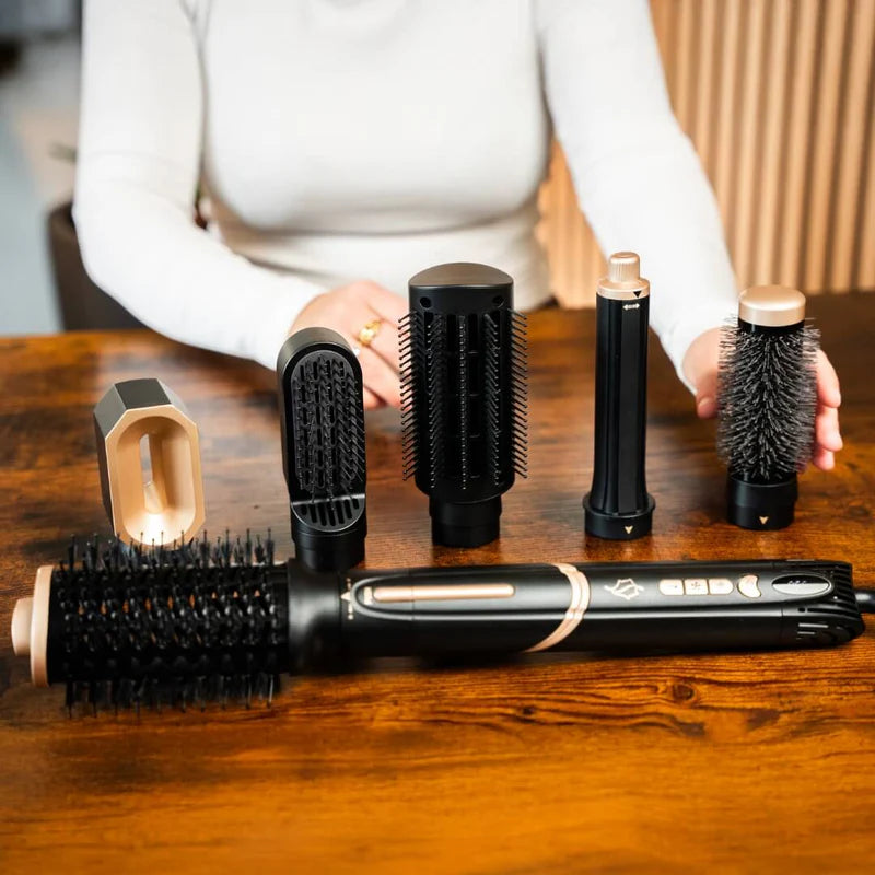 Comforth AeroStyler är en komplett 6-i-1 multistyler som gör det möjligt att både locka, platta, föna och skapa volym. Med flera munstycken kan du anpassa stylingen efter behov och skapa olika looks utan att behöva flera apparater. Perfekt för dig som vill ha en allt-i-ett-lösning som sparar tid och plats.