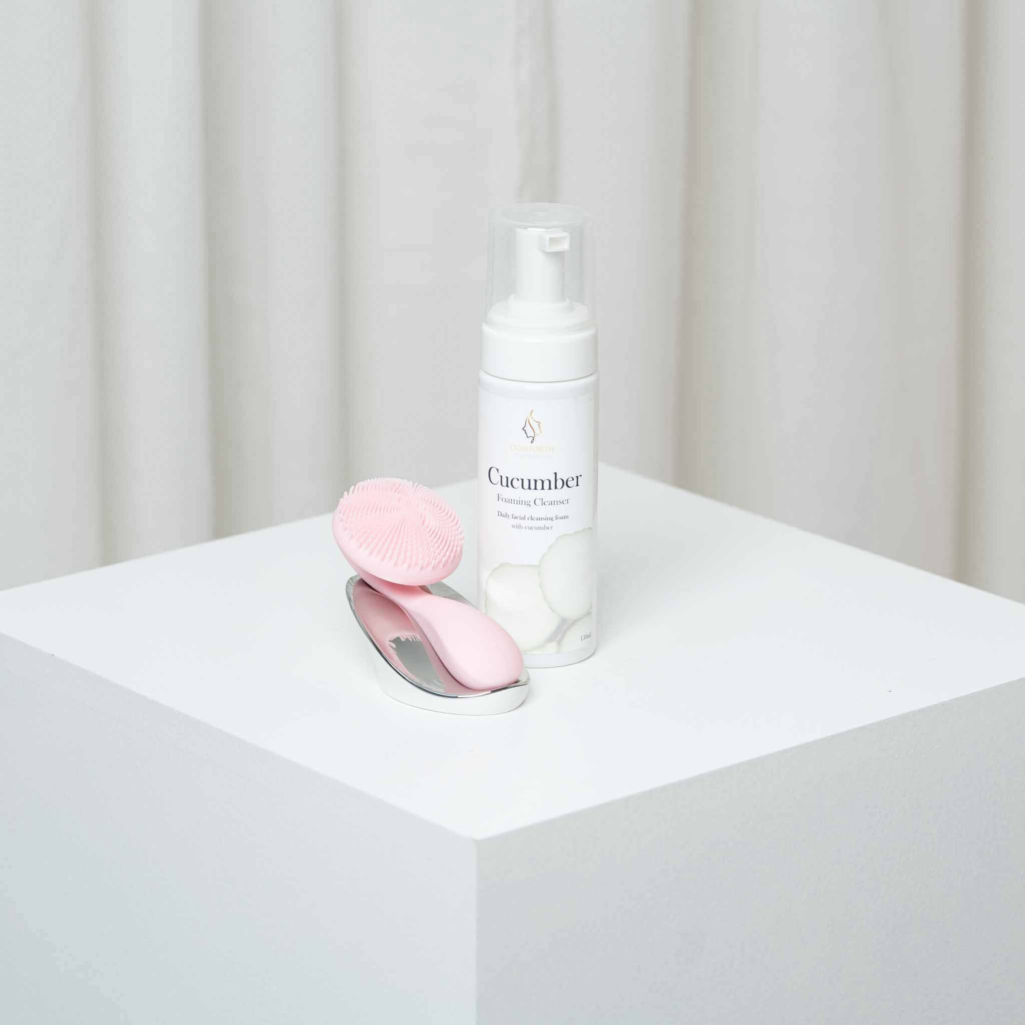 Comforth Cleansing Combo kombinerar de fantastiska egenskaperna hos Cucumber Cleansing Foam och vår ultrasoniska ansiktsborste, Comforth Cleanser. Detta ger dig den ultimata rengöringen och den bästa starten och avslutningen på din dagliga hudvårdsrutin.