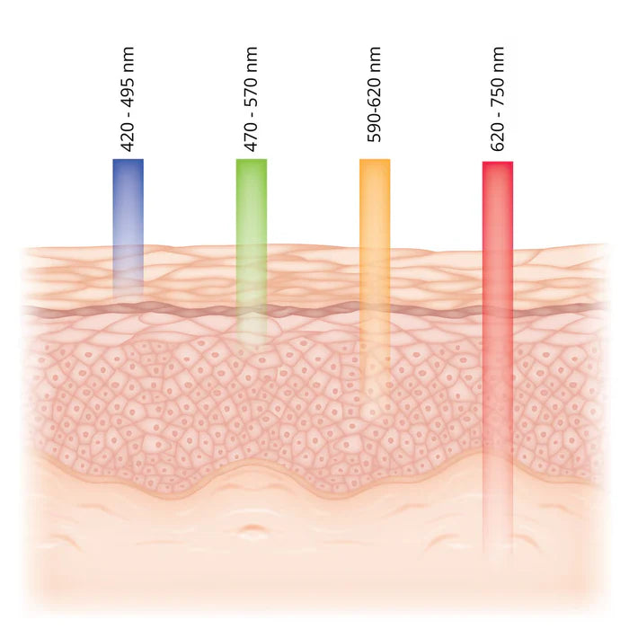 Denna våglängd absorberas av porfyrin, som är ett ämne producerat av de bakterier som orsakar akne. När detta ljus träffar porfyrin bildas singlet-iltmolekyler i huden, vilket skapar en starkt oxiderande miljö. Denna miljö är så kraftfull att den dödar de bakterier som orsakar akne och hjälper till att rengöra huden.