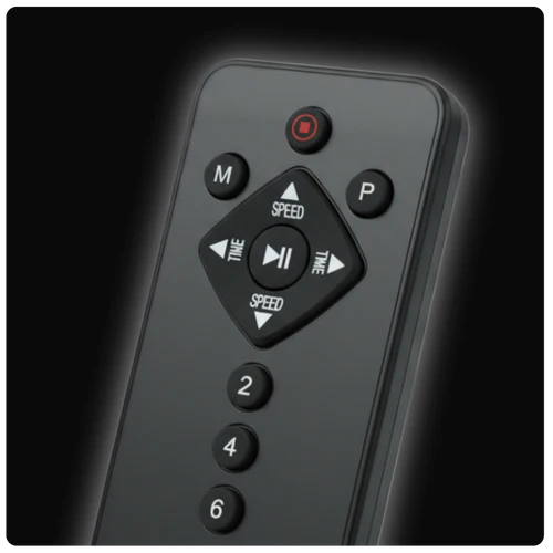 Byt hastighet, välj program och pausa – allt bekvämt från fjärrkontrollen, så att du kan fokusera på din träning utan att bryta rytmen.