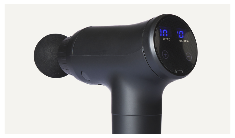 Den intuitiva LCD-skärmen visar batterinivå och hastighet, och med upp till 5 timmars batteritid kan du använda massagepistolen länge utan att ladda.